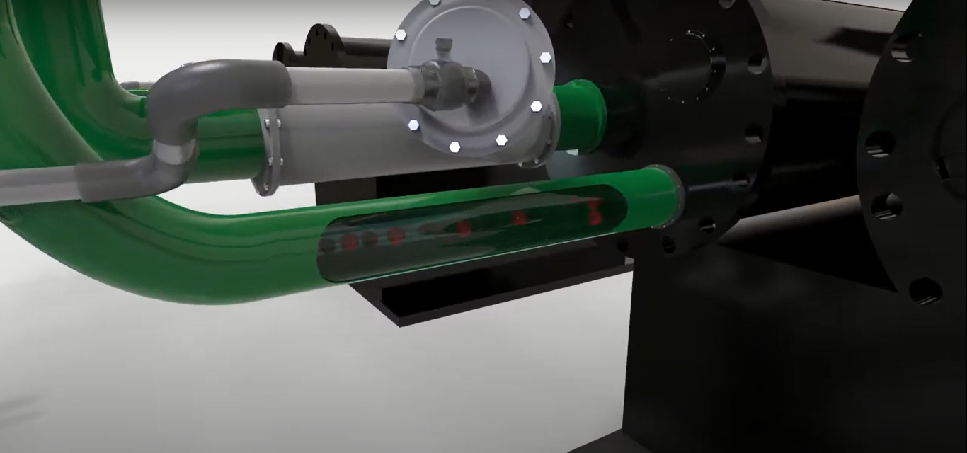 1. Water rushes into the ball injector when the injection valve is opened, flushing sponge cleaning balls into the flow of condensing water.